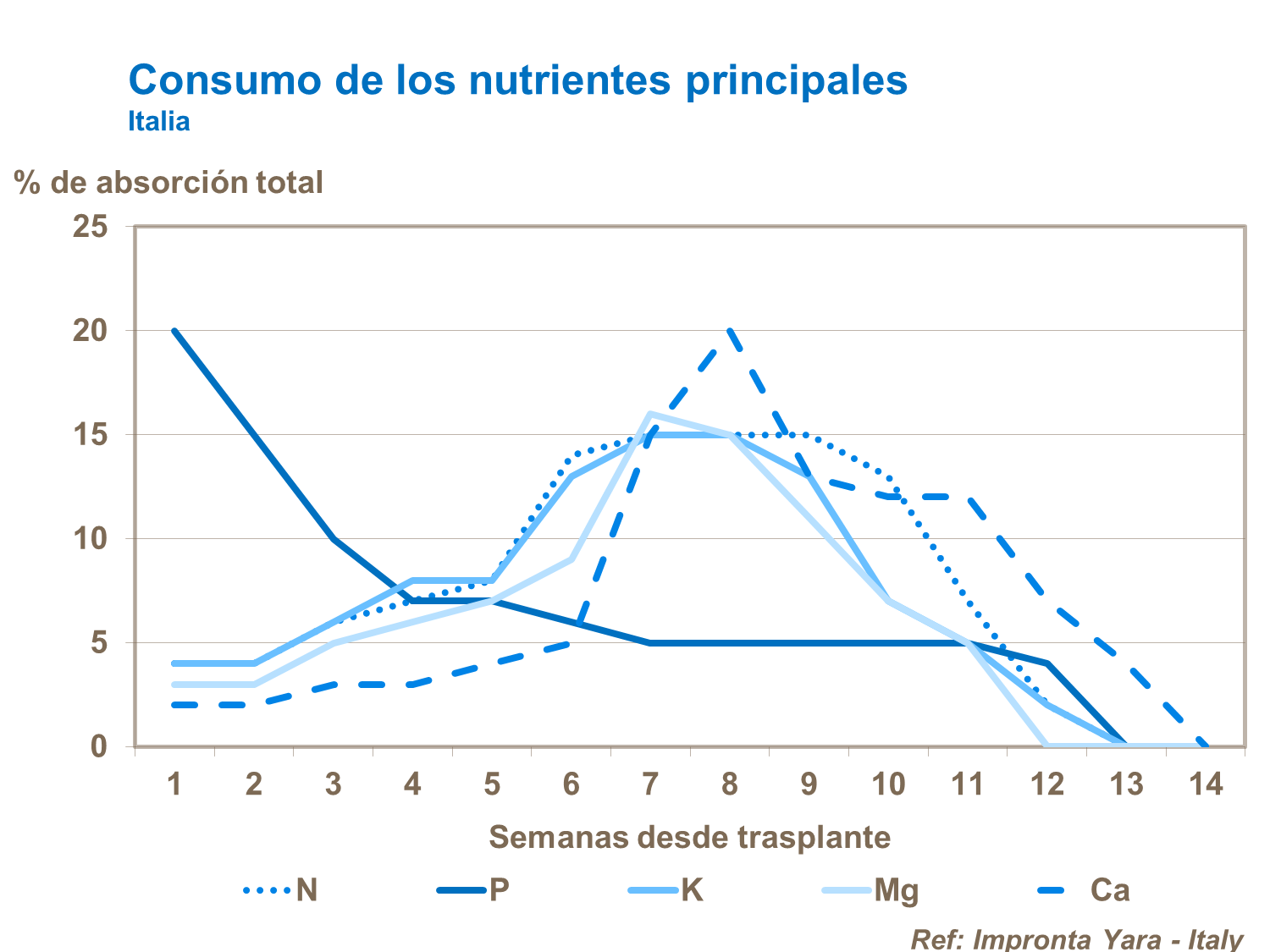 Más de un 60% del nitrógeno, fósforo y potasio absorbidos por la planta, será utilizado en el fruto.