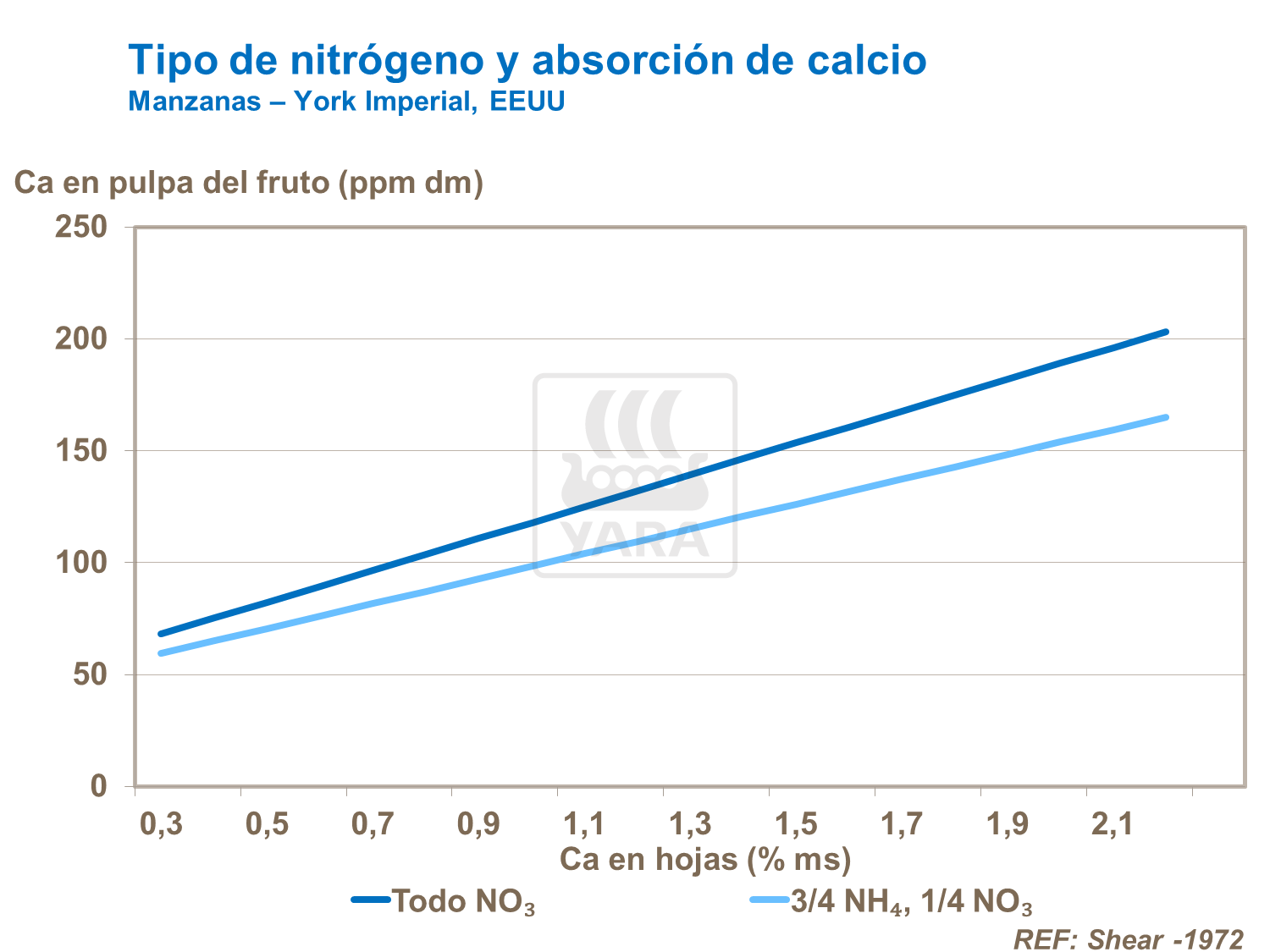 Un exceso de nitrógeno provoca abundancia en crecimiento foliar a costa del desarrollo del fruto. Los frutales con exceso de aplicaciones nitrogenadas pueden ser más susceptibles a enfermedades (como fuego bacteriano), y caída prematura de la fruta. El tamaño de frutos disminuye y en general, su calidad será menor.