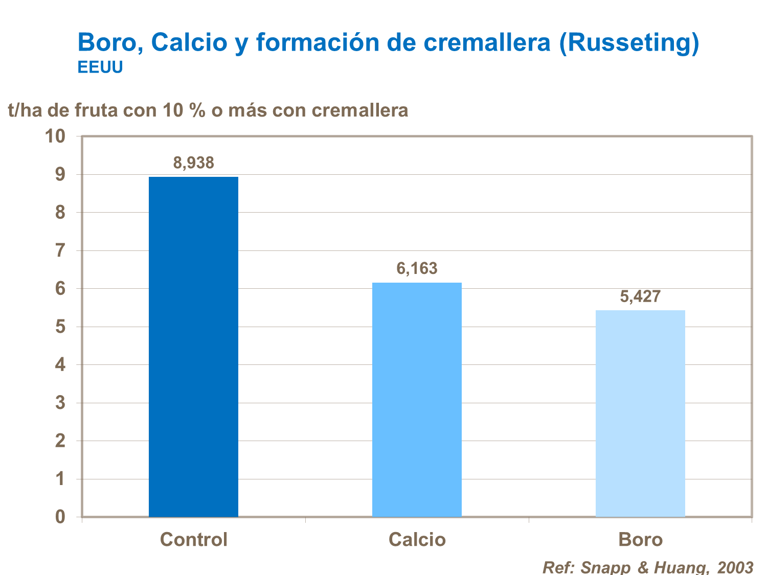 Las carencias de boro (y calcio) incrementarán los riesgos de formación de cremallera en el tomate.